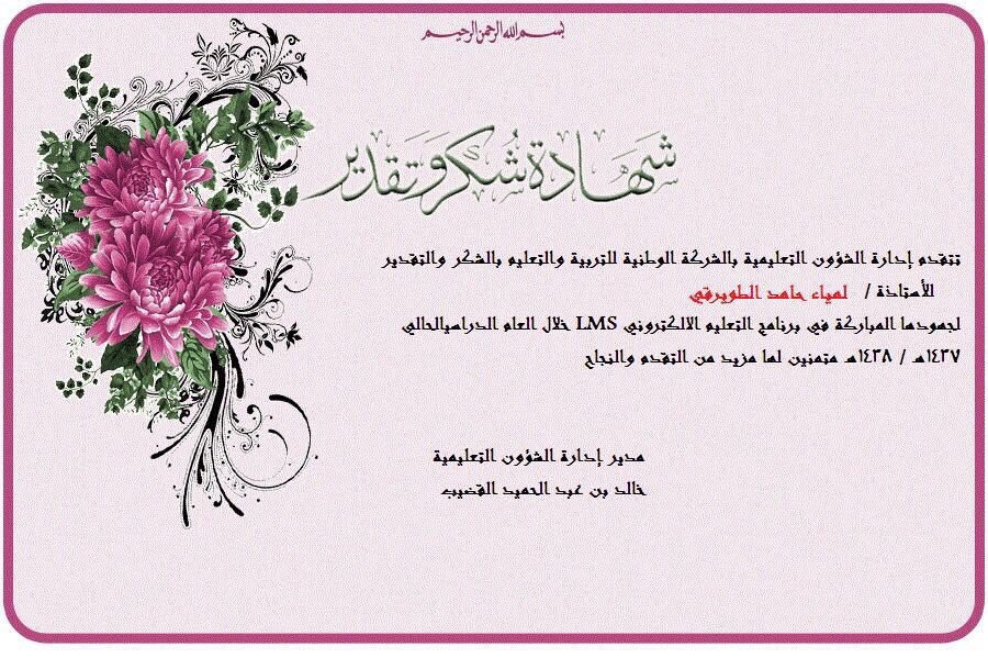 شهادات شكر وتقدير للطالبات المتفوقات جاهزة 1443.